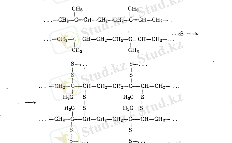 1-сурет. Каучук молекуласының вулканизация теңдеуі