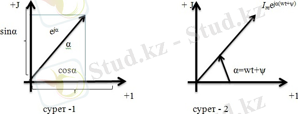 Мұндағыe jα - функциясының +1 өсіне проекциясы cosα -ға, ал +jөсіне проекциясы sinα- ға тең болады. Егер e jα - функциясының орнына I m e jα - ныалсақ онда