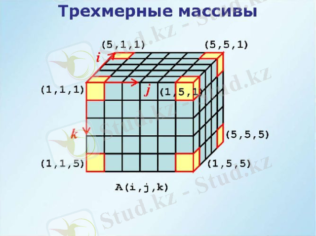 Двумерным массивом называется таблица, состоящая из строк и столбцов. Для описания массива используются два индекса.