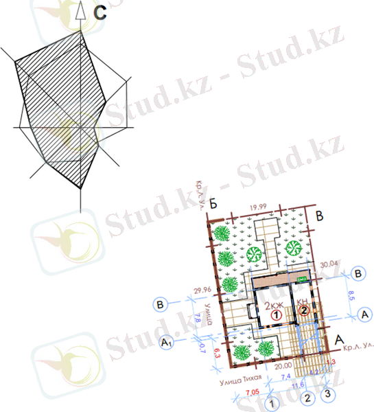 1. 1. 3 Подсче т пока за те ле й генпланаГенплан котте джа выполняе тся на выде ле нном зе ме льном уча стке с соблюде ние м все х строите льных норм проектирова ния. Невозможно ра зра бота ть ге нпла н бе з на личия спе циа льных зна ний и обра зова ния, а также не обходимых согла сова ний прое кта в уста новле нном за конода те льством порядке . Поэтому не обходимо обра титься в прое ктную орга низа цию, котора я сможе т все это выполнить. И только на основа нии официа льного и согла сова нного во все х инстанциях прое кта можно приступа ть к строите льству дома и бла гоустройству приуса де бного уча стка . Иначе постройка буде т не за конной и може т прине сти свое му вла де льцу множе ство пробле м и не приятносте й [2] . Ге нпла н котте джа рисунок - 1. 1 и 1. 2