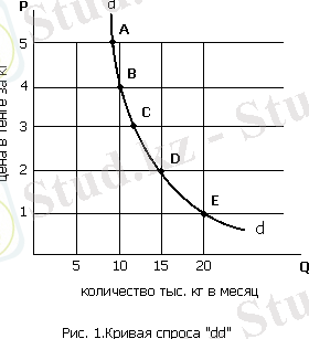 Кривая спроса "dd" отлого спускается вниз вправо и отражает важный закон: закон постепенного убывания спроса.