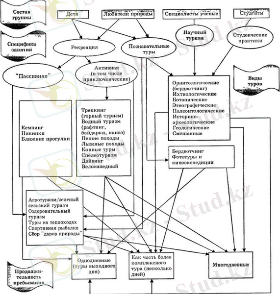 Прежде всего все многообразие видов экотуризма разделяется на два основных класса: