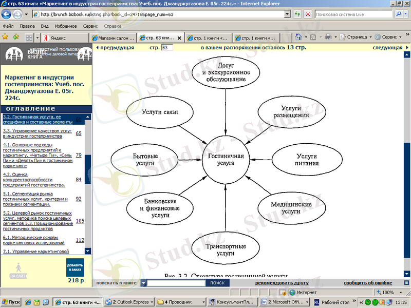 Следует отметить, что гостиничные услуги носят комплексный характер и состоят из разнообразных услуг, предоставляемых различными сферами, образуя единый продукт в виде «пакета услуг», подобранных для клиента в зависимости от уровня его потребностей. Однако такой «пакет» не носит жесткого характера, и клиент самостоятельно варьирует его составляющими.