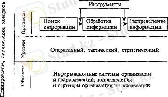 Сфера информационного менеджмента в широком смысле - совокупность всех задач управления на всех этапах жизненного цикла предприятия, включающая все действия и операции, связанные как с информацией во всех ее формах и состояниях, так и с предприятием в целом на основе данной информации. При этом должны решаться задачи определения ценности и эффективности использования не только собственно информации, но и других ресурсов предприятия, в той или иной мере входящих в контакт с информацией: технологических, кадровых. Финансовых и т. д.