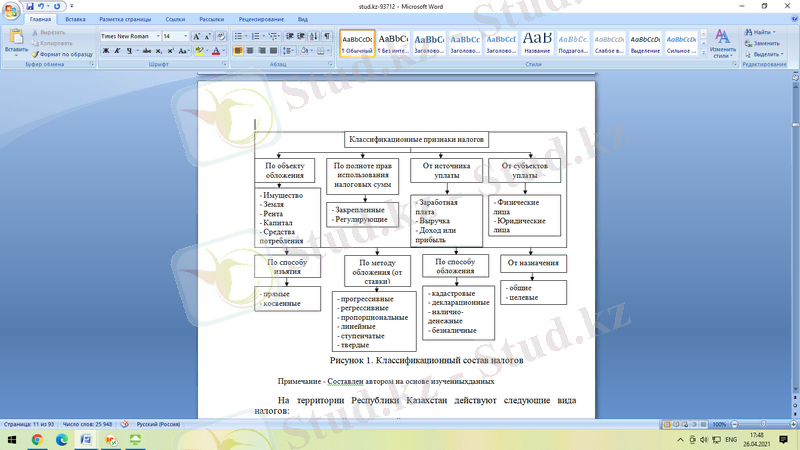 На рисунке 1 представлена несколько упрощенная классификация налогов, применительно к налоговой системе Республики Казахстан.