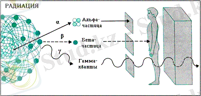 Излучение радиоактивных веществ. Естественные радиоактивные элементы испускают три вида излучений: альфа, бета и гамма. В 1899 Резерфорд идентифицировал альфа- и бета-излучение; спустя год П. Вийар открыл гамма-излучение.