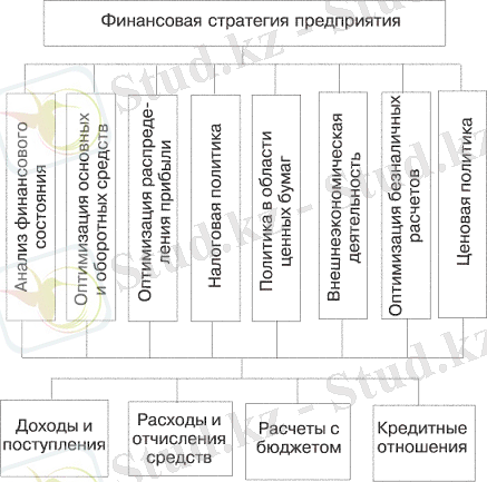 Финансовая стратегия предприятия охватывает все стороны деятельности предприятия, в том числе оптимизацию основных и оборотных средств, распределение прибыли, безналичные расчеты, налоговую и ценовую политику, политику в области ценных бумаг и др.
