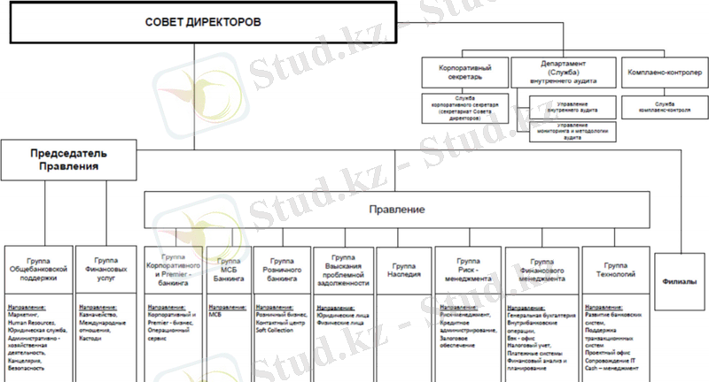 В рыночных условиях банки ставят перед собой цель оказывать банковские, а также не банковские услуги, а от этого организационная структура становиться шире, появляются новые подразделения и направления развития бизнеса.
