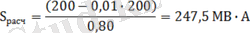 При блочной схеме трансформатор блока должен обеспечить выдачу мощности генератора в сеть повышенного напряжения за вычетом мощности нагрузки, подключенной на ответвлении от генератора. Тогда: