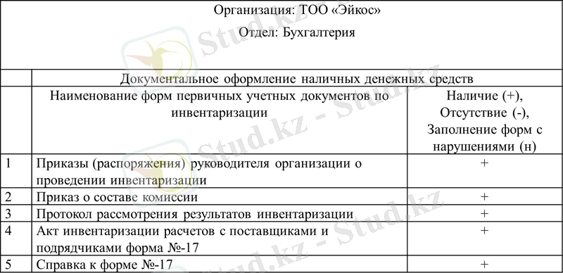 2. 2 Порядок проведения инвентаризации расчетов с поставщиками и подрядчиками на ТОО «Эйкос»