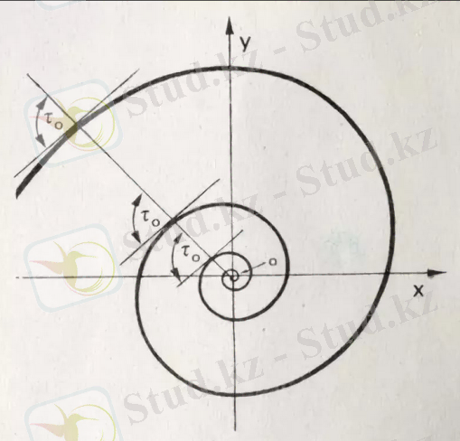 Логарифмическая спираль - плоская кривая, описываемая точкой, движущейся по прямой, которая вращается около одной из своих точек О (так называемого полюса логарифмической спирали) так, что логарифм расстояния движущейся точки от полюса изменяется соотвественно углу поворота; логарифмическая спираль пересекает под постоянным углом все прямые, выходящие из полюса (рис. 8) .