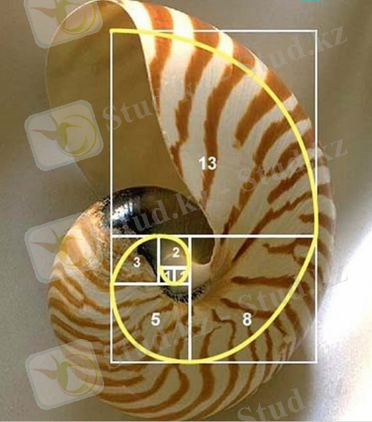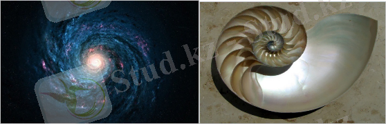 Логарифмическая спираль очень часто встречается в природе, из-за связи с определенными циклами роста живых организмов. У большого колличества моллюсков последовательные витки раковины не одинаковы, а все более и более утолщаются (рис. 12, рис. 1) . Во многих случаях примерные значения толщины последовательных витков образуют геометрическую прогрессию. Хотя раковину моллюска некорректно назвать живым организмом, но она образуется в ходе его роста. Один из наипростейших способов наращивания нового вещества автоматически приводит к образованию некой фигуры, которая напоминает логарифмическую спираль. Во многих раковинах обнаруживается совпадение между результатами измерений и приблезительными значениями, ожидаемыми для построения точной логарифмической спирали.