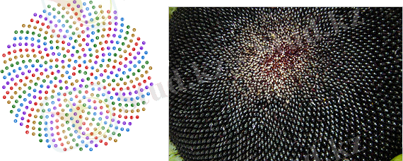 Учёный Фогель в 1979 году предложил модель распределения цветков и семян у подсолнуха.