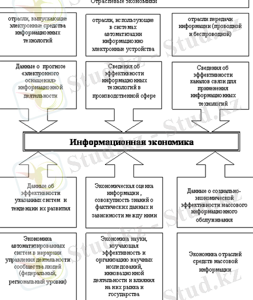 Информационная экономика, получая научную информацию из многих источников, использует ее для оказания влияния на сопредельные области и отрасли экономического знания. Данные связи показаны в приложении 1.