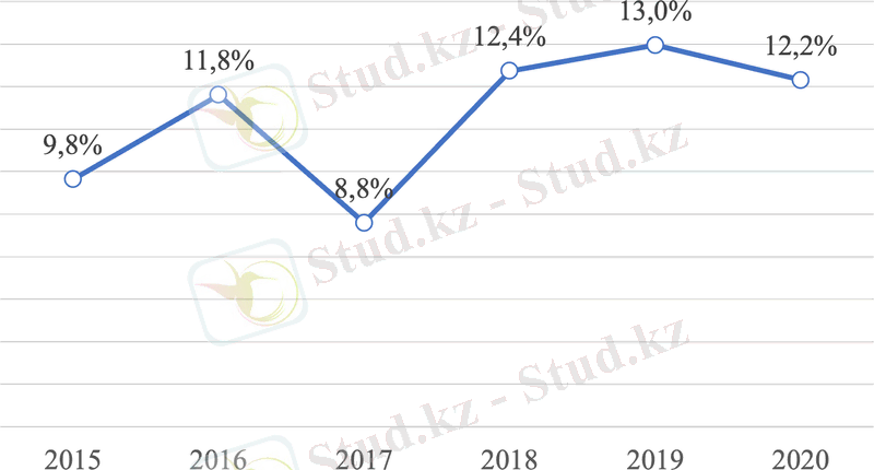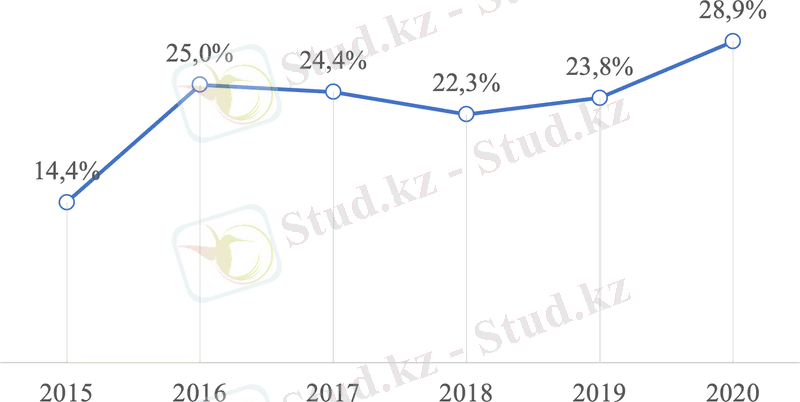 Рaсходы нa обслуживaние и погaшение госдолгa к доходaм республикaнского бюджетa, в%, 2015-2020 годы