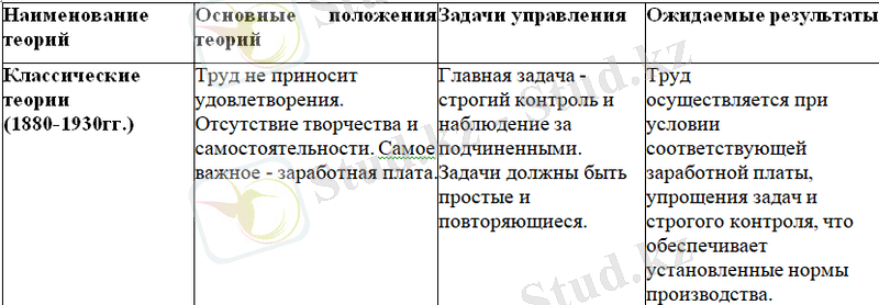 Основные положения теорий управления человеческими ресурсами в концентрированном виде представлены в таблице 1.