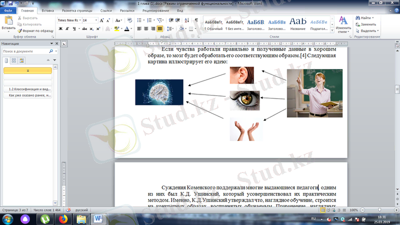 Как уже сказано ранее, наглядность является одним из принципов учебного процесса, опирающаяся на демонстрацию определенных объектов или явлений. Исходя из этого, учащиеся создают для себя образные представления, отталкиваясь напрямую от предложенного наглядного материала.