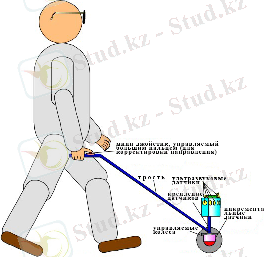 На рисунке 2. 1 показан слепой пользователь, идущий с помощью GuideCane.