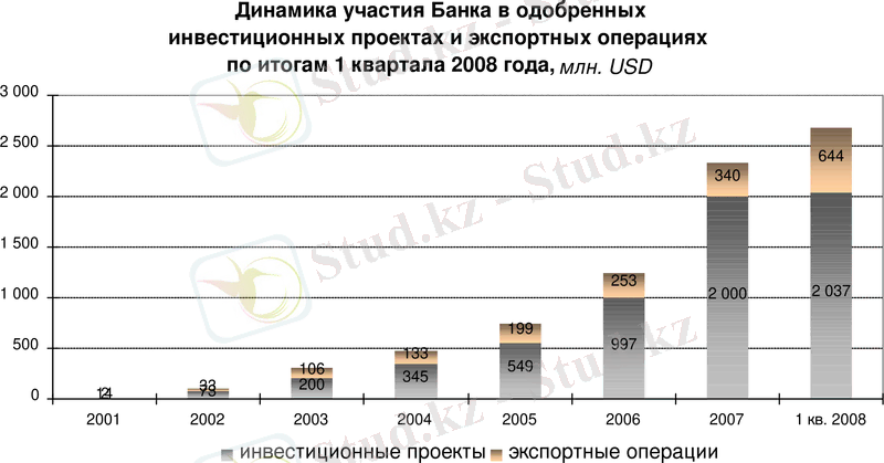 В первом квартале 2008 года одобрено 4 экспортных операции на сумму 335, 8 млн. долларов США с долей участия Банка в сумме 305 млн. долларов США.