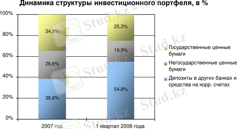 В целом объем активов инвестиционного портфеля с начала 2008 года увеличился на 28 333, 45 млн. тенге и по состоянию на 1 апреля 2008 года составил 147 461, 54 млн. тенге.