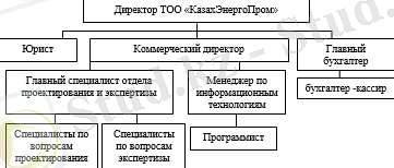 Организационную структуру ТОО «КазахЭнергоПром» можно охарактеризовать как двухуровневую линейную. Она позволяет осуществлять оперативное и эффективное руководство данным предприятием и взаимодействие отдельных служб.