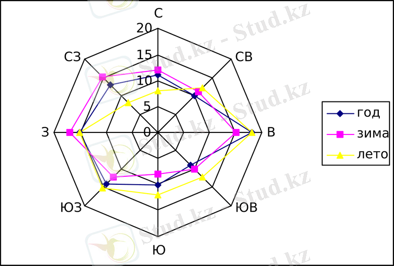 По данному розе ветров можно увидеть, что целесообразным будет расположить входную группу ориентировочно на север, северо-восток или же на юг или юго-восток, так как восточная и западные стороны будут подвергаться обильному ветру.