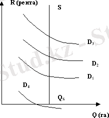 И, наоборот, при снижении спроса на землю рентные вознаграждения сокращаются. Если спрос на землю станет слишком низким (кривая D 4 ), то зерноводческие хозяйства не будут платить ренту вообще.