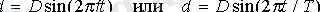 Здесь d - смещение поршня из положения равновесия, а D - постоянный множитель, который равен максимальному значению величины d и называется амплитудой смещения.