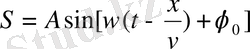 (Вместо синуса можно написать косинус. ) Это уравнение отличается от уравнения синусоидальных колебаний тем, что колеблющая величина S зависит не только от времени, но и от координаты. Это и понятно: вместо одного маятника мы имеем множество связанных маятников - частиц среды. v - скорость распространения волны, А - амплитуда волны, аргумент синуса - фаза волны, - начальная фаза колебаний в точке х = 0, - частота (циклическая) волны.