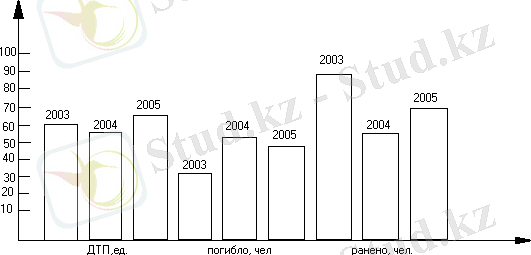 1. 2. Анализ дорожно-транспортных происшествий по автотрассе Алматы - Ташкент на участке дороги между пунктами Кулан - Мерке за 2003-2005 годы.