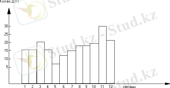 Гистограмма распределения ДТП по месяцам за 2003-2005 годы показана на рисунке 1. 2.
