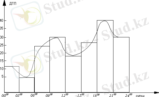 Гистограмма распределения ДТП по времени суток за 2000 - 2002 года показана на рисунке 1. 3.