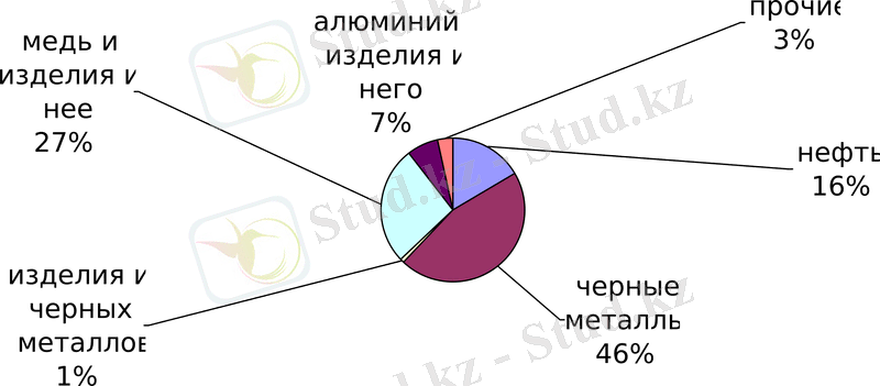Экспорт черных металлов составляет 46% и от общего экспорта в РК, и занимает первое место, медь и изделия из нее составляют 27%, нефть 16 %, алюминий и изделия из него 7%. На первом месте проведения экономических реформ в КНР и РК были избраны, в сущности, модели проведения экономической политики, с некоторым существенным отличием: в КНР предопределялся экспорт готовой продукции, который явился фундаментом для развития отечественных предприятий и товаропроизводителей, а в РК модель имеет сырьевую направленность. Это обстоятельство превращает РК в ресурсный участок мирового рынка, в котором увеличение сырьевой направленности приводит к усилению импортной зависимости внутреннего рынка, росту внешнего долга, утечкой Казахстанского капитала за рубеж.