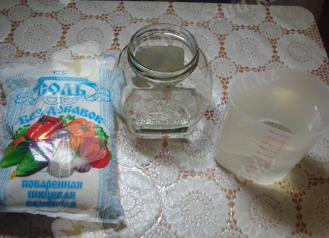 1. Приготовил нитки, соль, банку.