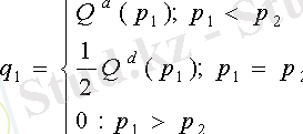 Если при данной цене дуополиста 1, P 1 > МС, дуополист 2 устанавливает цену З 2 > МС, остаточный спрос дуополиста 1 будет зависеть от соотношения цен P 1 и P 2 . А именно при P 1 > P 2 , q 1 = 0 все покупатели, привлеченные более низкой ценой, перейдут к дуополисту 2. Напротив, при P 1 < P 2 весь рыночный спрос окажется захваченным дуополистом 1. Наконец, в случае равенства цен обоих дуополистов, P 1 = P 2 , рыночный спрос окажется поделенным между ними поровну и составит ( а / b - 1/ b P ) 0, 5 для каждого.