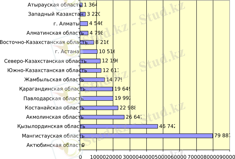 Из рисунка 2 видно, что наибольшее количество отдыхавших в 2017 году в санаторно-курортных организациях наблюдалось в Мангистауской области 79 997 человек, в Кызылординской области 46 742 человек, в акмолинской области 26 647 человек.