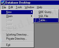 Таблицы создадим с помощью входящей в интегрированную среду программирования Delphi 6 программы Database Desktop . Для этого запустим в Delphi 6 эту программу с помощью команды Tools->Database Desktop.