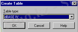 После этой команды появится диалоговое окно, в котором надо выбрать тип таблицы. Мы выберем тип таблиц dBase IV (рисунок 6) .
