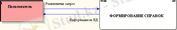 Для нашего примера на контекстной диаграмме показана работа ПОЛУЧЕНИЕ СПРАВОЧНОЙ ИНФОРМАЦИИ, описывающая основную цель разработки системы.