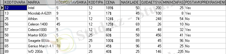В таблице 1. 2 представлена структура таблицы Tovari. db .