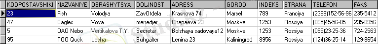 В таблице 1. 3 представлена структура таблицы Dostavki. db