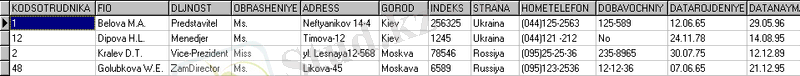 В таблице 1. 6 представлена структура таблицы Sotrudniki. db