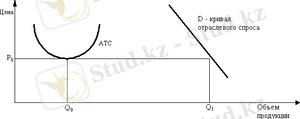 Таким образом, при цене, покрывающей лишь минимум возможных издержек, достаточно будет всего нескольких компаний, чтобы обеспечить весь имеющийся спрос. Как показано на рисунке 1, если средние издержки меняются в соответствии с кривой АТС, а минимум издержек достигается фирмой при объеме продаж Q 0 , будет достаточно лишь 2 - 3 компаний, чтобы при цене Р 0 удовлетворить весь рыночный спрос Q 1 . В такой ситуации уровень рыночной концентрации будет очень высоким.