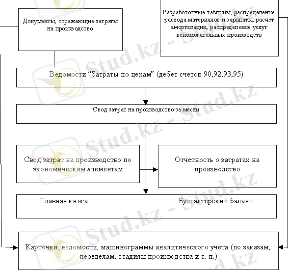 Для учета затрат на производство применяют комплексную систему счетов, в которую входят счета подразделов 90 “Основное производство”, 92 “Вспомогательное производство”, 93 “Накладные расходы”, 95 “Брак в производстве”.