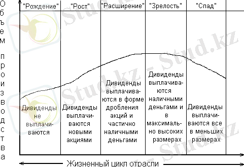Рост − признание потребителями новых видов инвестиционных товаров, увеличение спроса на них, существенный рост числа фирм и компаний. На этой стадии инвестирование осуществляется высокими темпами, а дивиденды выплачиваются преимущественно дополнительными акциями.