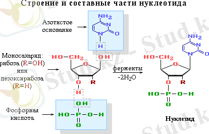 Нуклеотид - фосфорный эфир нуклеозида. В состав нуклеозида входят два компонента: моносахарид (рибоза или дезоксирибоза) и азотистое основание.