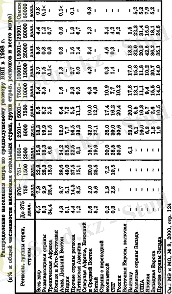 Следствием этого является высокий уровень ВВП на душу населения. В 1997 году среднедушевой размер ВВП в мире составлял 5130 долл., а в группе индуст-риальных стран - 25 700 долл. Средневзвешенная ве-личина этого показателя для развивающихся стран и стран с переходной экономикой равнялась 1250 долл. Это означает, что страны-лидеры опережали остальной мир по величине ВВП на душу населения почти в 21 раз. Исчисление ВВП по паритету покупательной спо-собности сокращает этот разрыв до 7 раз. Такая тен-денция разрыва наглядно иллюстрируется данными табл. 2.