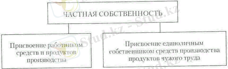 Частное присвоение имеет два вида, которые существенно различаются между собой: а) собственность на средства производства человека, который сам трудится, и б) собственность на вещественные условия производства лица, применяющего чужой труд.