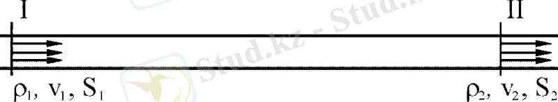 Количество жидкости, поступающее в единицу времени в объем через торцевое сечение I площадью S 1 и равное ρ 1 v 1 S 1 , будет таким же, как масса жидкости ρ 2 v 2 S 2 , вытекающая через противоположное сечение II площадью S 2 , то есть: