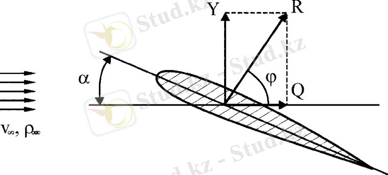 На рисунке 1. 5 представлено крыло в потоке воздуха, расположенное к оси потока под углом атаки α. Здесь Y - подъемная сила, Q - лобовое сопротивление, которое в 20 - 25 раз меньше подъемной силы Y.